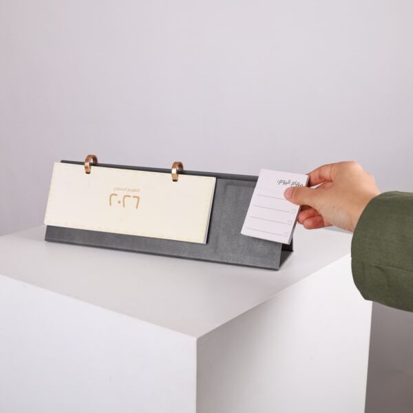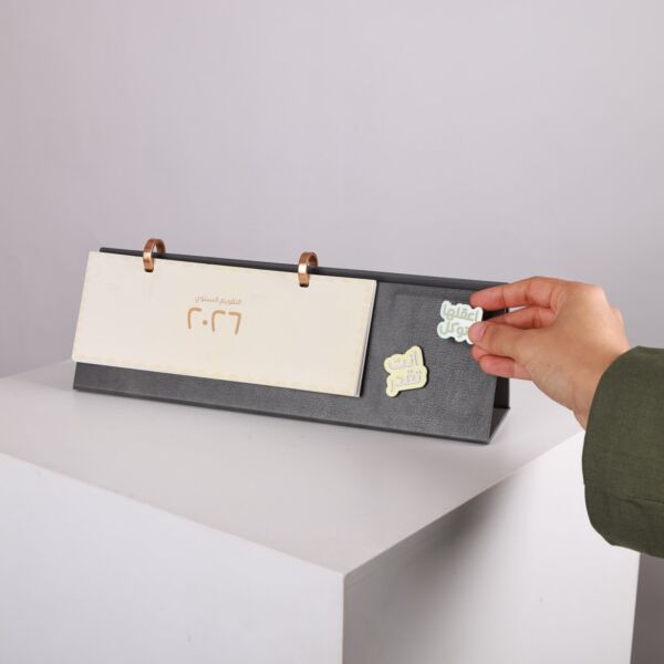 2026 desktop calendar with an elegant leather design, featuring a hidden magnetic side within the leather for easy attachment of any magnetic item.