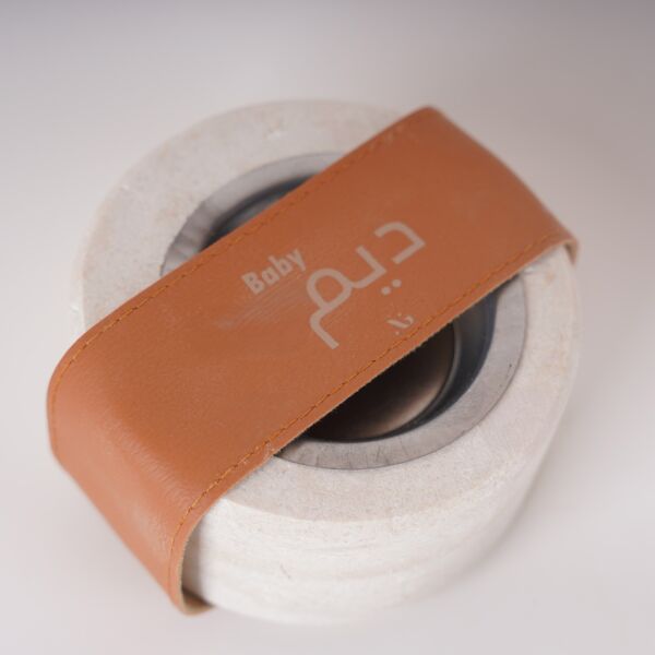 مبخر دائري من حجر الترافرتين ، مع حزام من الجلد و يمكنكم اضافة الاسم